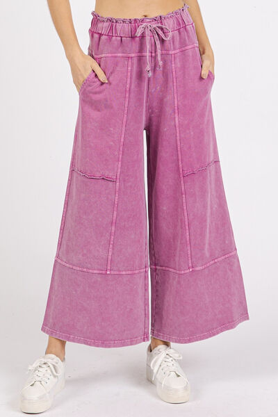 The Mineral Wash Seam French Terry Wide Leg Pants are a casual and comfortable option for everyday wear. The mineral wash treatment gives them a unique and vintage look. Featuring seam detailing, these pants have a subtle and stylish touch. Made from French terry fabric, they are soft and cozy. With a wide leg silhouette, they offer a relaxed and laid-back vibe perfect for lounging or running errands.