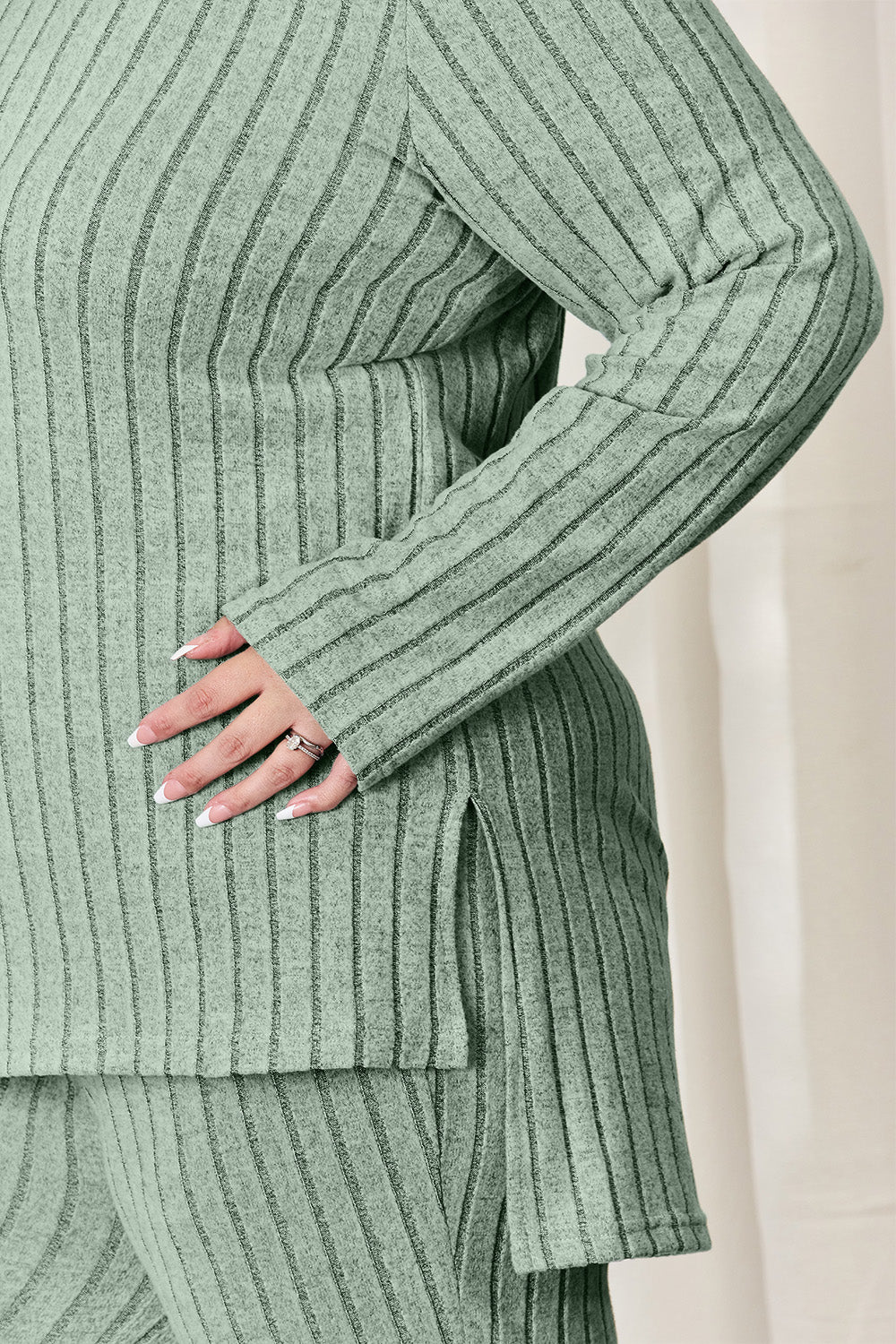 Full Size Ribbed High-Low Top and Wide Leg Pants Set