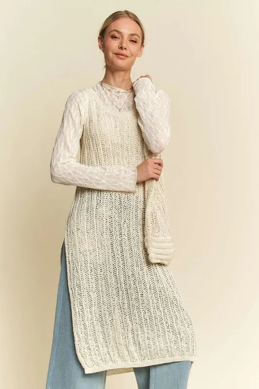 Davi & Dani Knit Side Slit Round Neck Sleeveless Dress & Bag