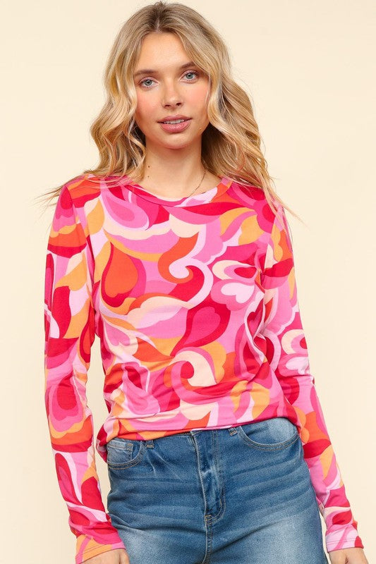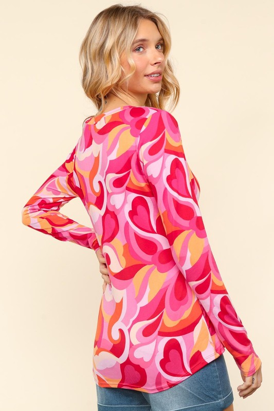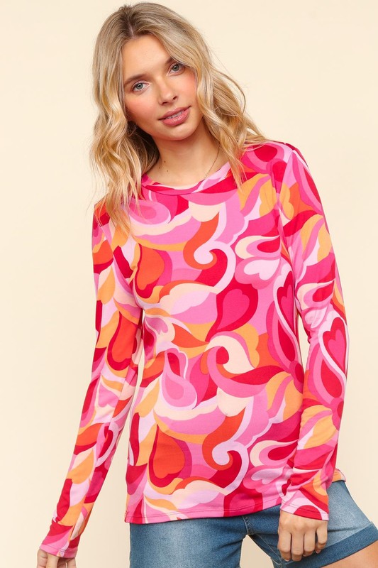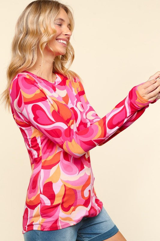 Haptics Full Size Heart Print Round Neck Long Sleeve T-Shirt