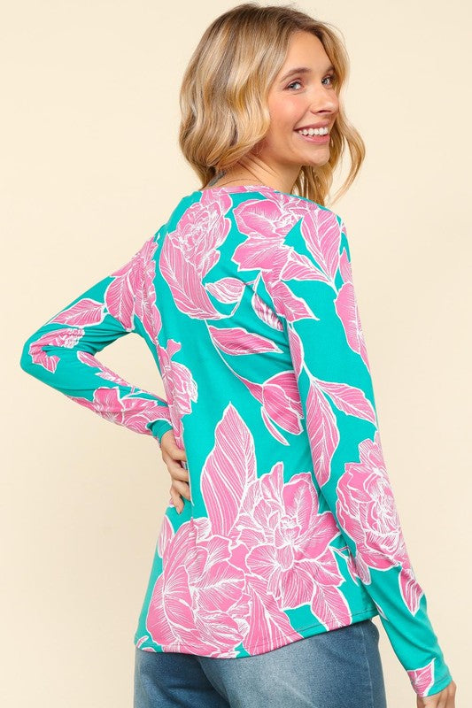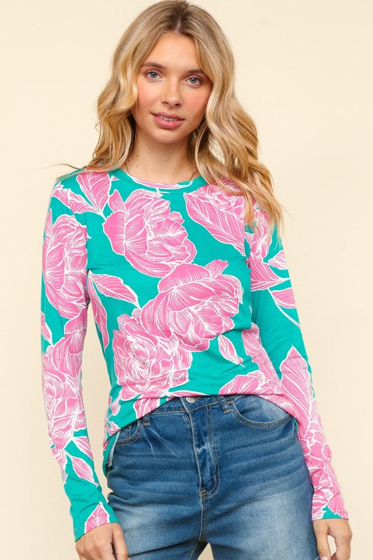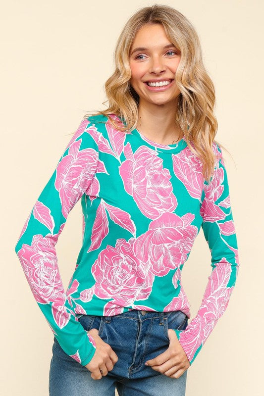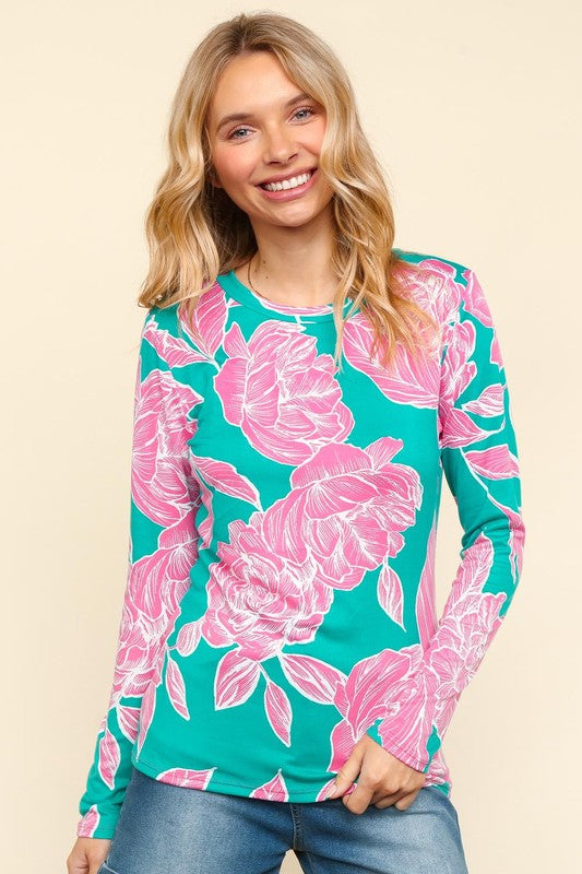 Haptics Full Size Floral Round Neck Long Sleeve T-Shirt