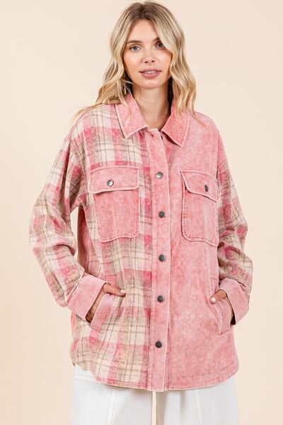 Mittoshop Plaid Button Down Drop Shoulder Jacket