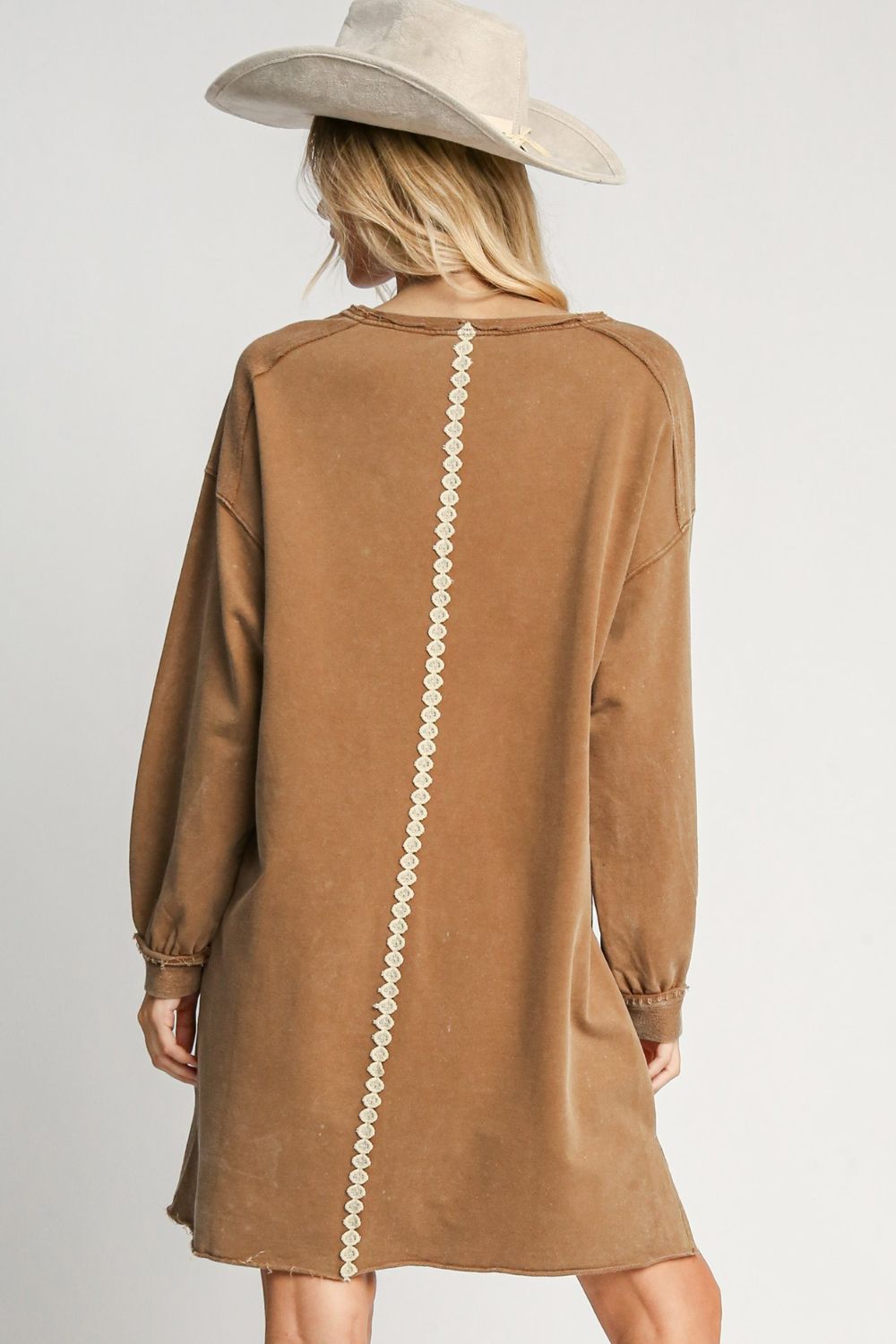 Umgee Peace Lace Applique Frayed Hem French Terry Mini Dress